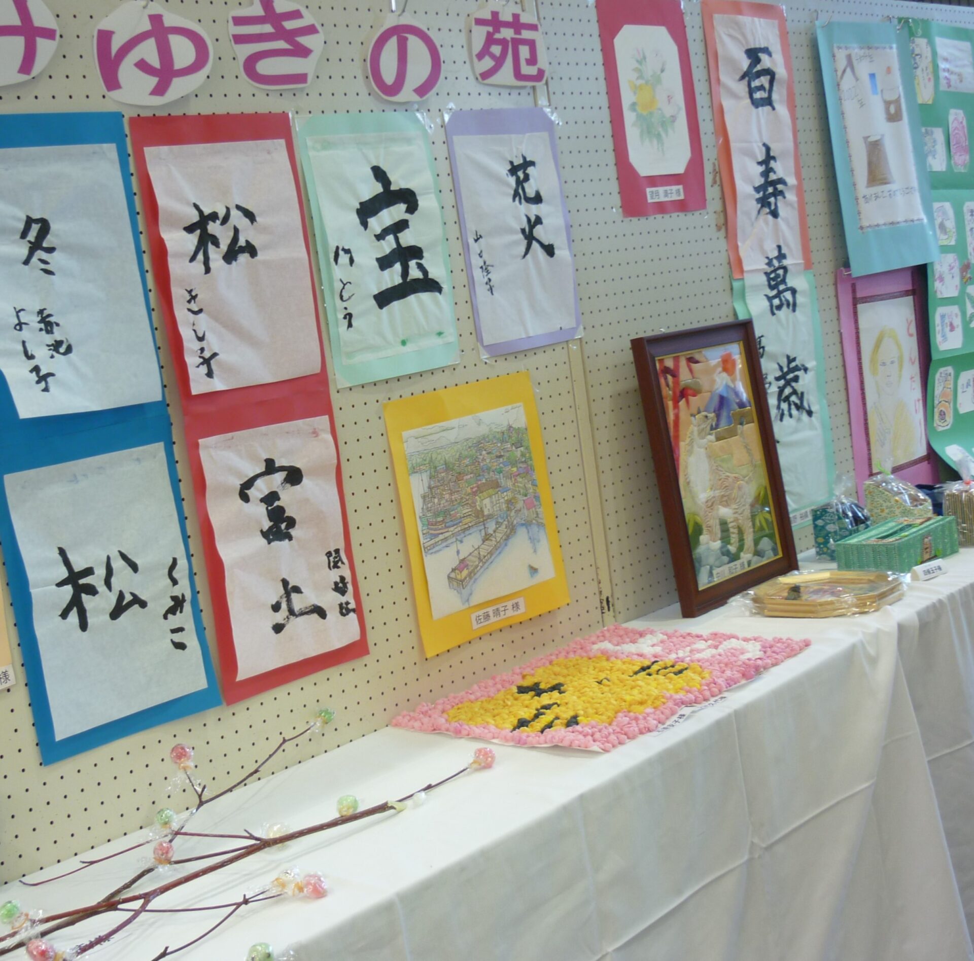 利用者様の、紙まるめなど沢山の作品が展示されました。