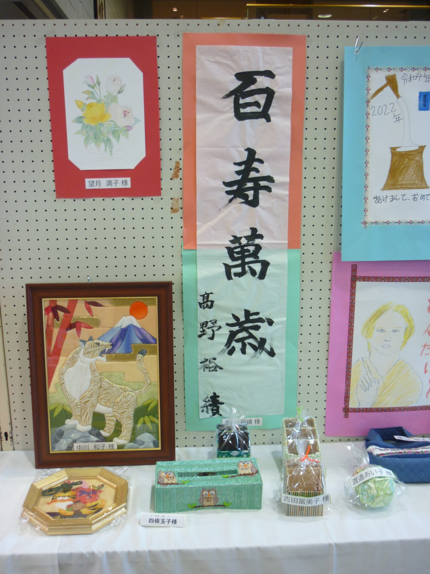 デイ利用者様の書き初め、きめ込み、小物入れ