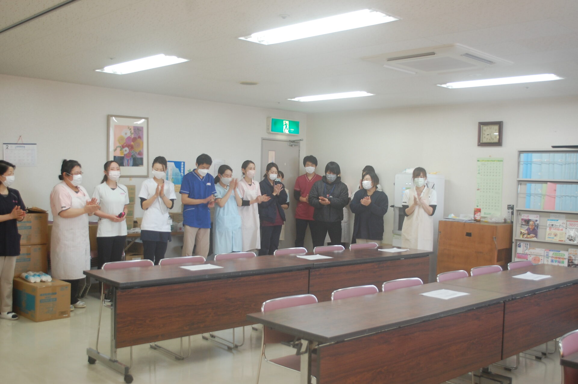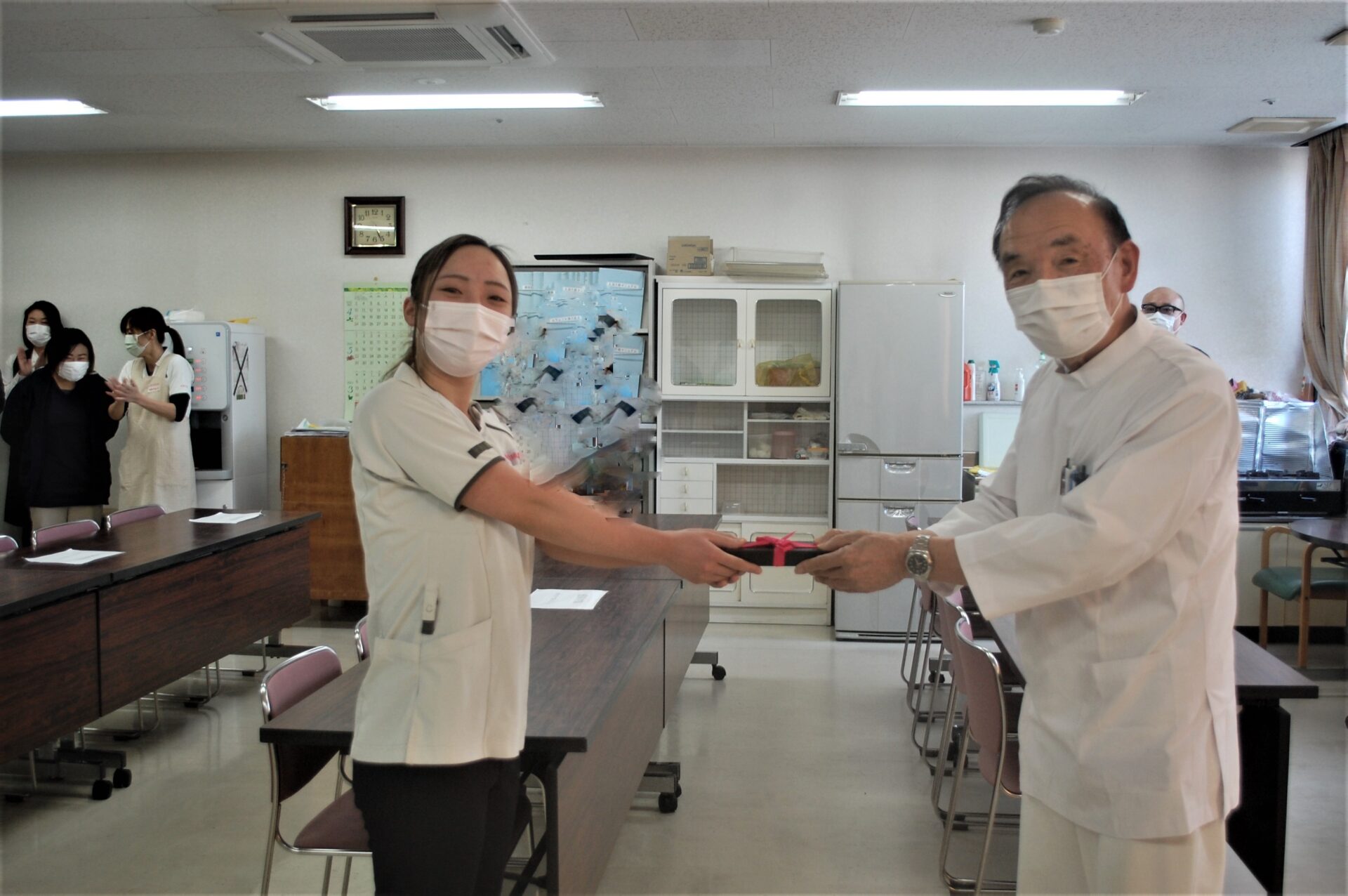 と抱負を延べ、職員の拍手喝采に笑顔で答えてくれました。