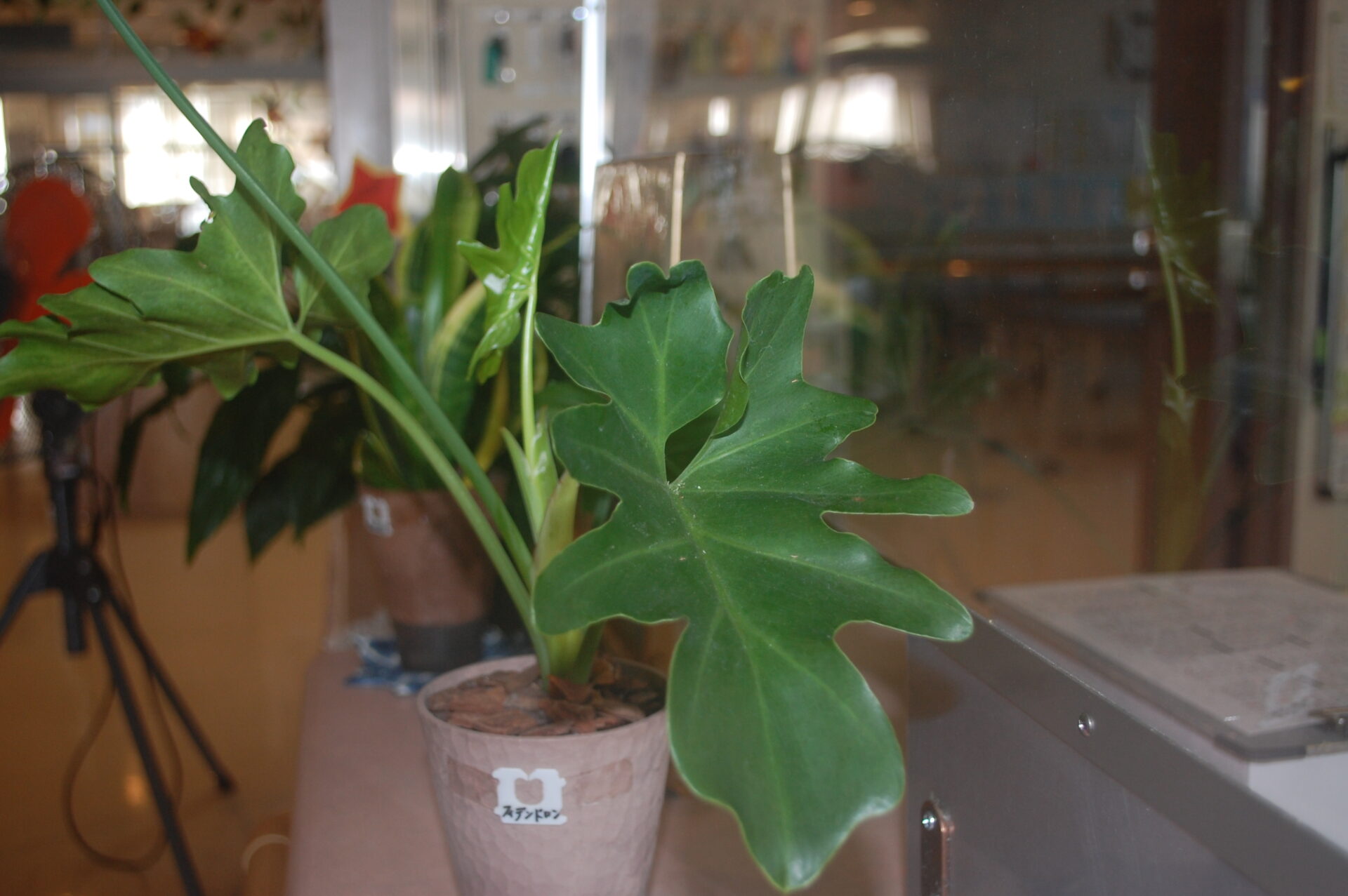 受付窓口にある、フィデンドロンは新しい葉っぱが1枚増えました。