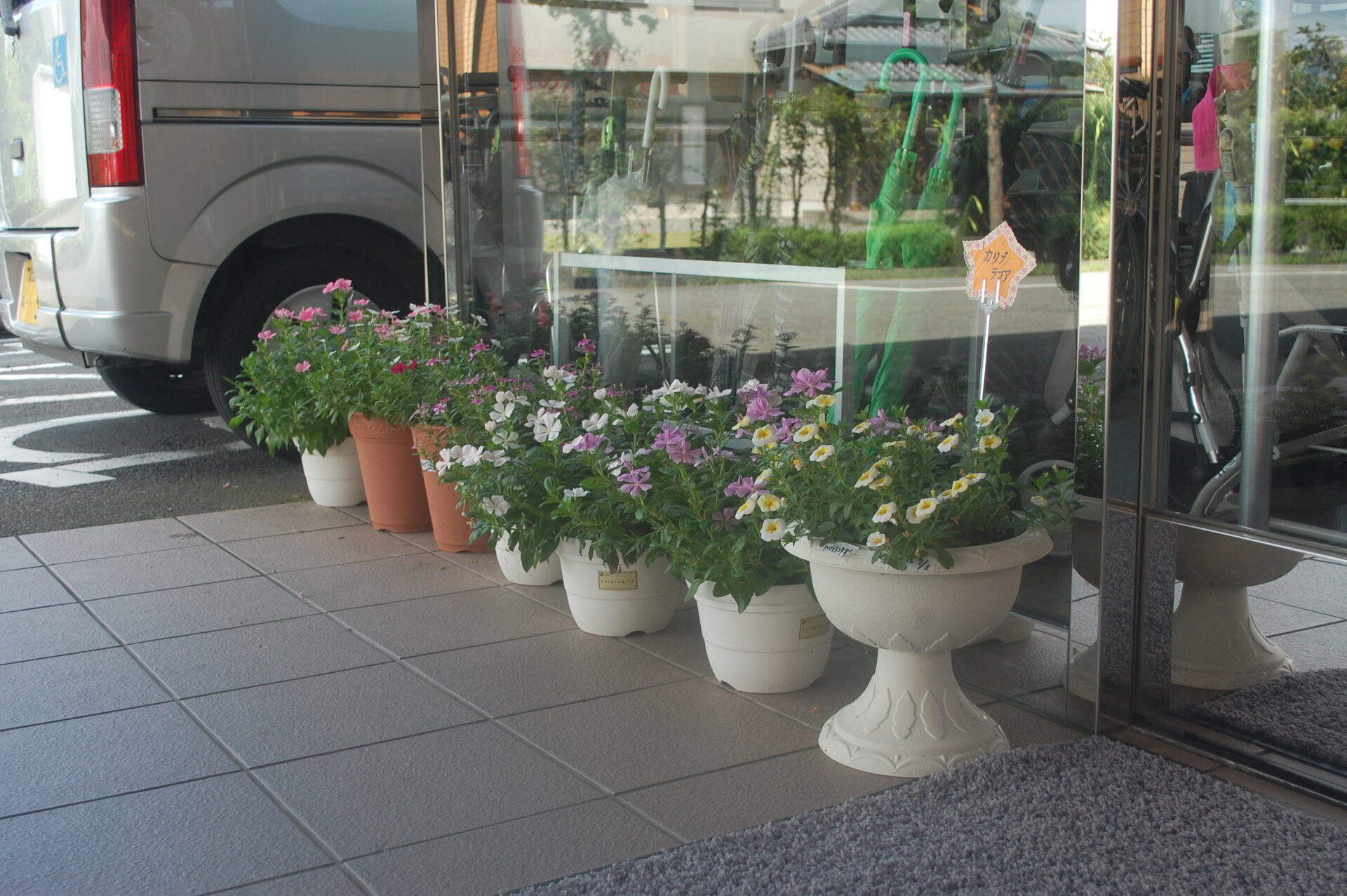 みゆきの苑の玄関は、カリブラコア・色々なタイプの日々草がありますよ🌸
