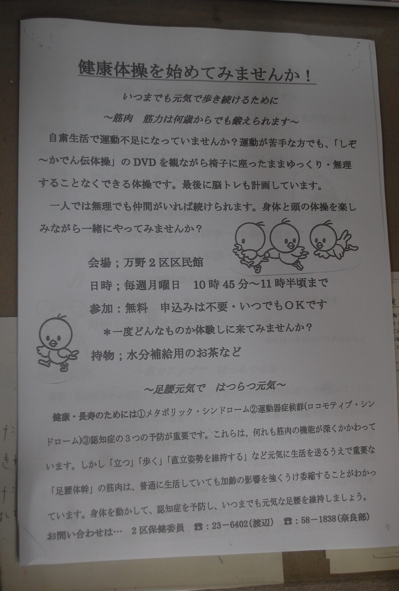 「転倒・骨折予防の為の健康体操」に参加してきました。
