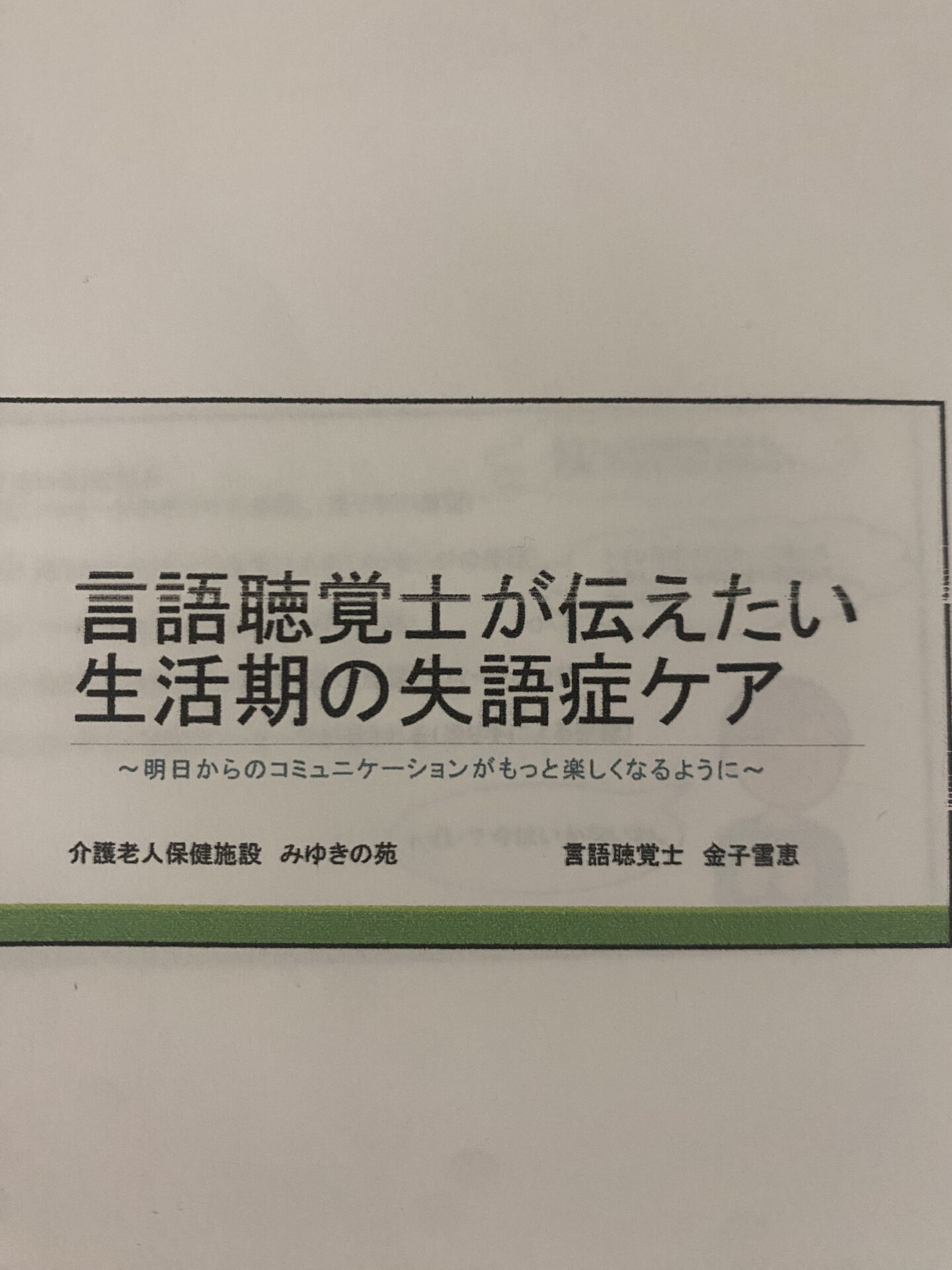 「言語聴覚士が伝えたい生活期の失語症ケア」という講義を