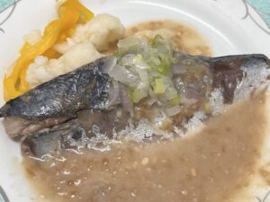 ・鯖のほうじ茶煮ピーナッツソース